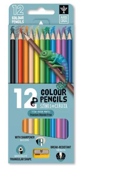 Ars Una Ars Una: Háromszögletű színes ceruza hegyezővel - 12 db-os (5993120000000) - jateknet