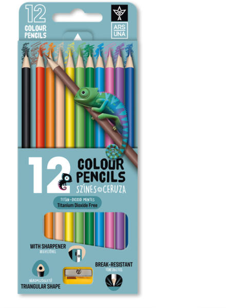 Színes ceruzakészlet 12 db-os, hegyezővel, Ars Una, háromszög test