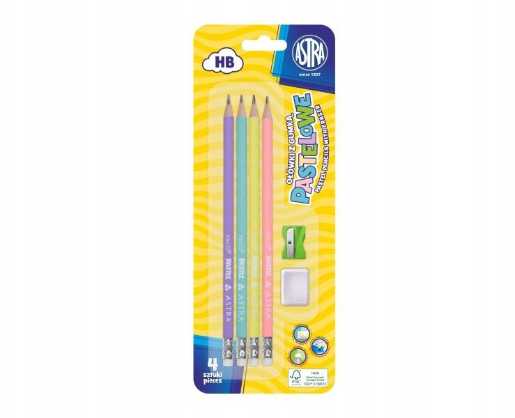 Astra Pasztell, 4 db normál Hb ceruza skálával és radírral, reszelő+radír, bliszteres kiszerelésben (206120007)