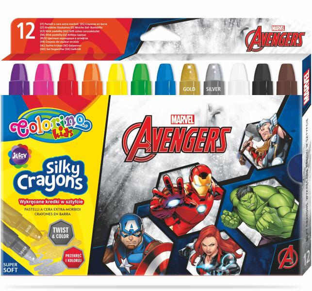 Megjegyzés: Ez a leírás automatikusan le lett fordítva magyarra. Colorino Avengers színes ceruza, 12 db AVENGERS - Puha ceruzák, gél pálcikában 3 az 1-ben. 12 színből álló készlet intenzív, lédús színekkel, köztük 2 metál szín: arany és ezüst! Csak csavard és rajzolj! Nem morzsolódnak és nem töredeznek. Ujjaival rajzolhatja vagy dörzsölheti őket, hogy száraz pasztell hatást érjen el. Akvarell hatás eléréséhez használhat ecsetet és vizet is; Nagy felületek nagyon jó lefedése; Csak csavarja és rajzolja; Papírra, kartonra, fára festéshez; A műanyag keret védi a kezét a szennyeződésektől; Mossa le meleg vízzel és szappannal.