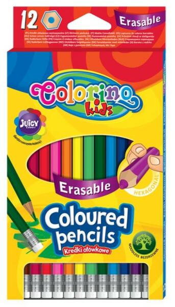 Colorino radírozható 12db-os szinesceruza készletRadíros végű hatszögletű színesceruza élénk színekkelA színesceruza könnyen hegyezhető, a ceruzabél erős, nem törik