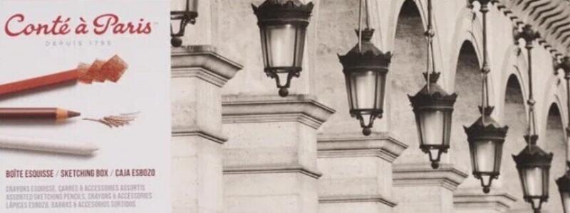Ez egy automatizált szoftver általi fordítás:A márka luxus rajzkészlete Conté à Paris papírdobozban. A csomagban: Fehér kréta ceruzával Szépia ceruza világosbarna (sangvinikus) Szög Pierre noire 3B ceruzával 2 papírszóró Műanyag gumi Kemény pasztell (5 szépia árnyalat) Kemény pasztell fehér Kemény pasztellszürke Kemény szög (2xB, 2x2B, HB)