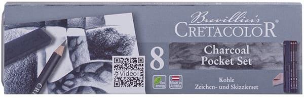 CRETACOLOR Charcoal Pocket Set szén rajzkészlet, 8 db-os, fémdobozos