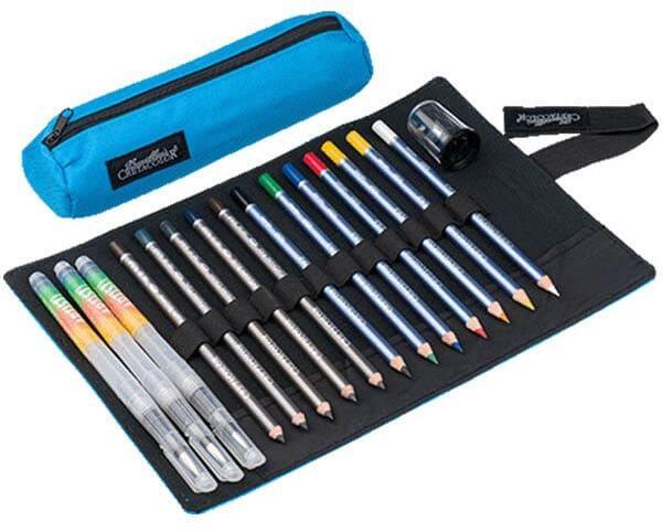 CRETACOLOR Pencil Wrap Set rajzkészlet feltekerhető vászon tartóban - Aqua, 17 db-os
