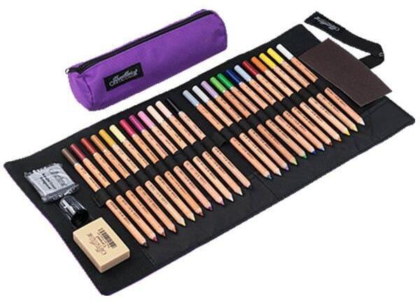 Különleg es pasztell rajzkészlet feltekerhető vászon c eruza- és tolltartóban . A Cretacolor Fine Art pasztellceruza kiválóan alkalmas finom aprólékos munkákhoz.