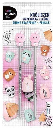 Kidea Nyuszis HB grafitceruza - 2 db-os - hegyezővel (KROT3KA) csomag 2 db HB grafitceruzát és egy nyuszis hegyezőt tartalmaz. A csomagolásban található termékeket cuki nyuszi díszíti.