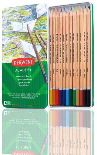 Derwent Academy akvarell színesceruza készlet fémdobozban, 12 db