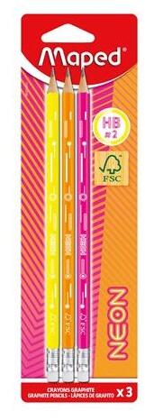 Maped háromszögletű grafitceruza radírral 3 db-os - Black Peps Neon (IMA853710)