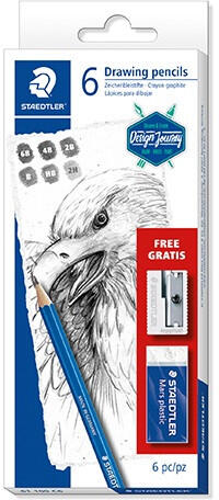 • A készlet tartalma: 6 db különböző keménységű művészeti grafit ceruza + 1 db radír + 1 db fém hegyező