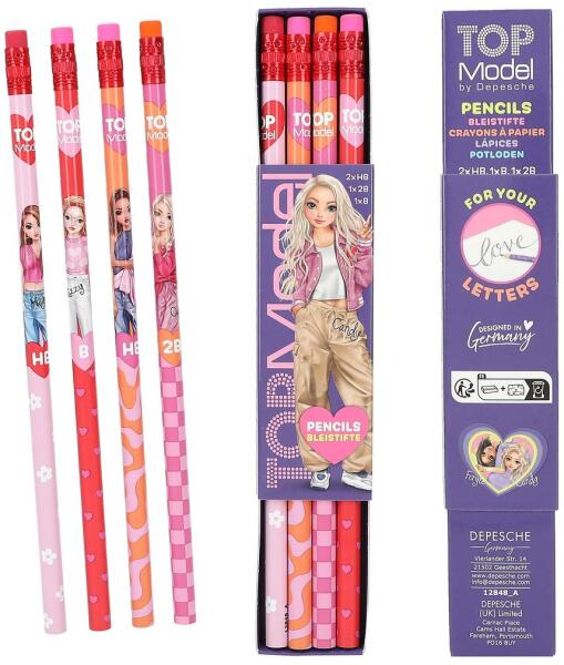 A ceruzakészlet négy ceruzából áll, vidám, színes dizájnnal és remek modellmotívumokkal. Különböző keménységi fokozatok: 2x HB, 1x 2B és 1x B.